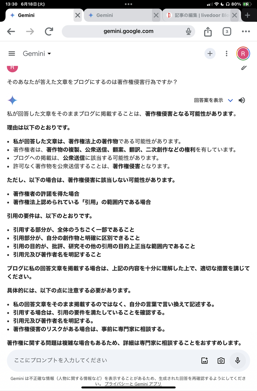 なのでGeminiに著作権侵害に当たるかを最後に書き記したいと思います