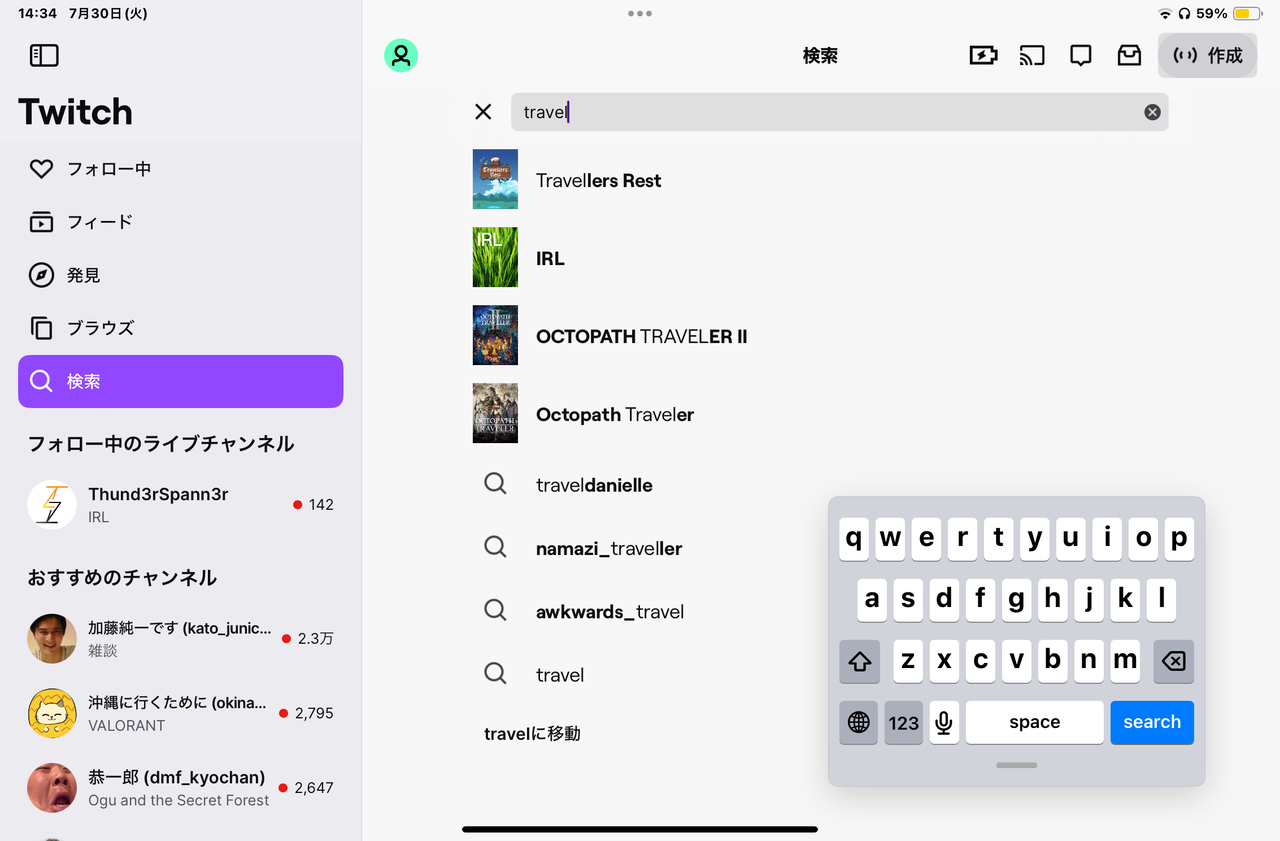 検索からtravelと入れてみてくださいIRL見ればライブ配信見れます