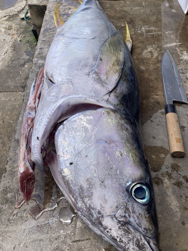 前日にずっと海パンで外で遊んでました。マーケット行って,買ったツナさばいて刺身にしたりカマ焼き,ツナカツ,寿司とかみんなで騒いでいた。