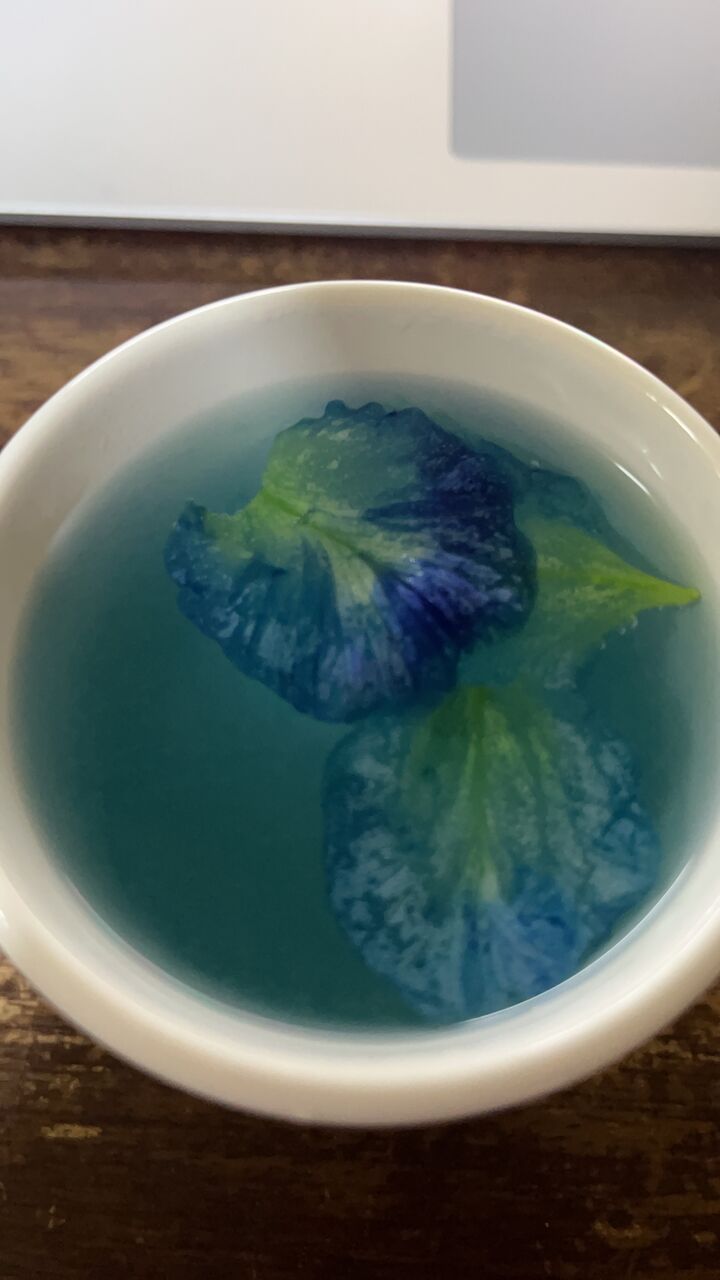 時に檸檬を絞ると紫色に変化します。蜂蜜入れますと飲みやすいですね